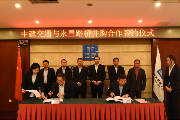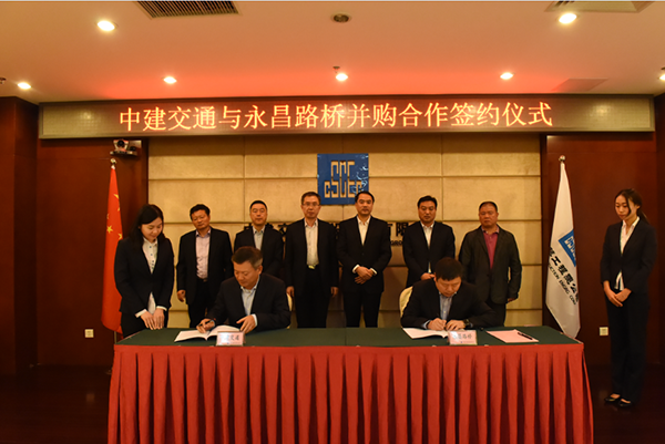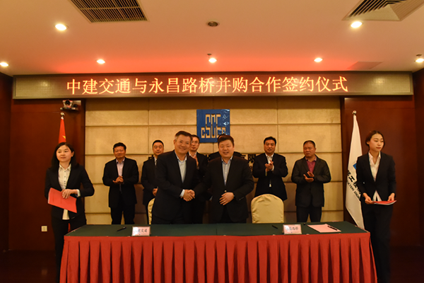 3月9日下午,永昌路桥集团与中建交通建设集团在北京举行了并购合作签约仪式,永昌路桥集团董事长杜宗平先生与中建交通建设集团董事长、党委书记周宇騉先生分别代表双方进行了签字。