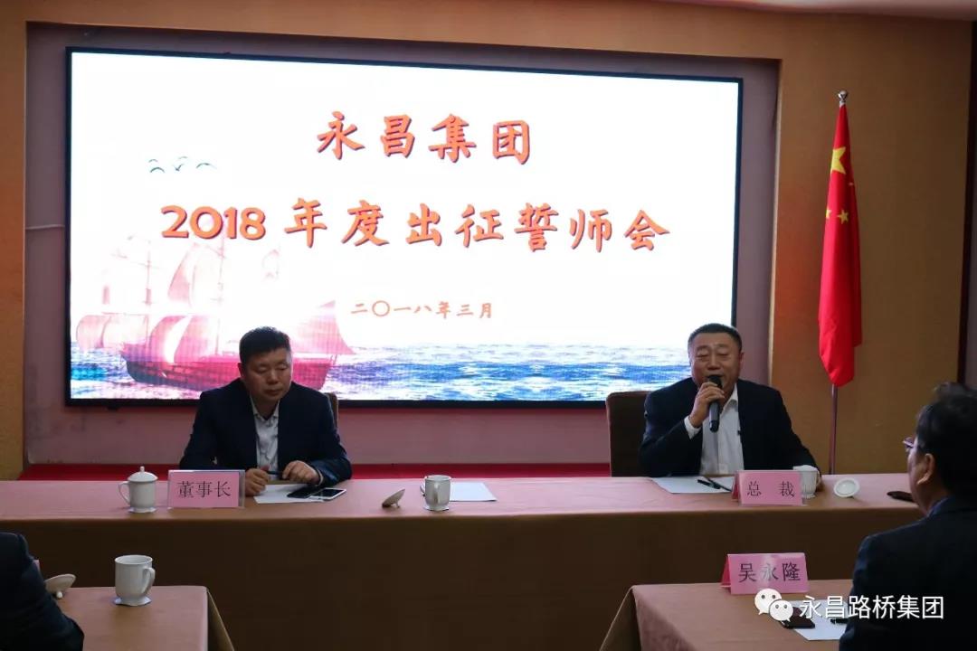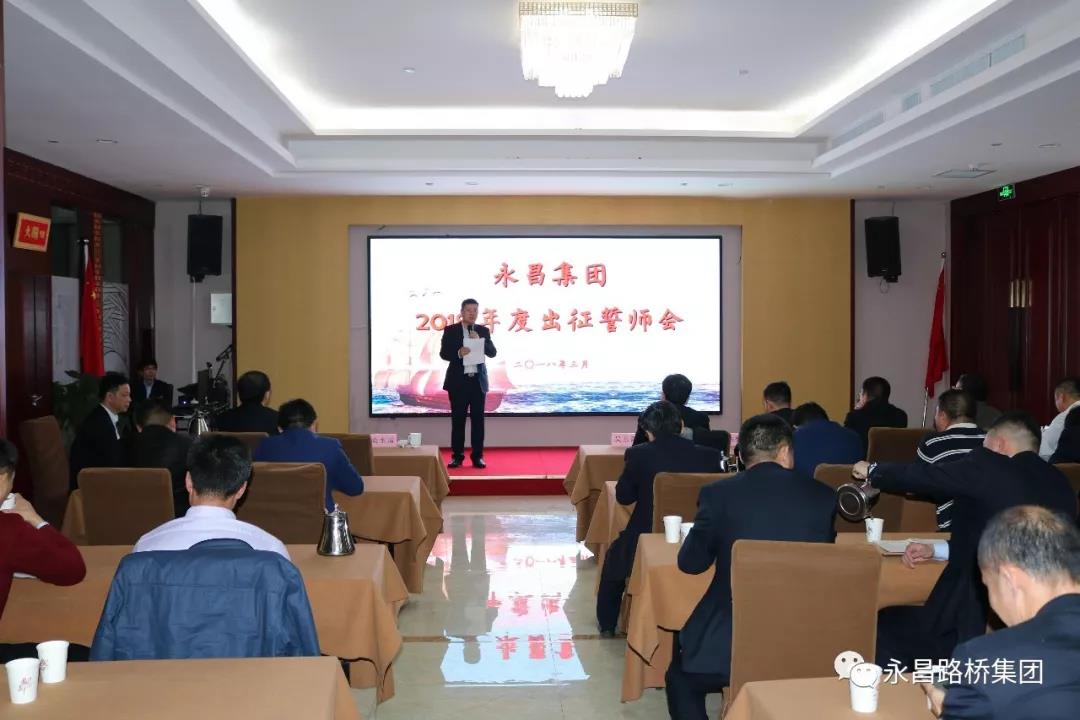2018年3月5日下午,永昌集团2018年度出征誓师大会在鸿顺国际酒店隆重举行,集团副总裁袁水清主持会议,这次大会是集团发展进入传承发展新时代开局之年召开的一次重要会议。集团董事长杜宗平、总裁侯海泉及集团中高层领导50余人参加了会议。