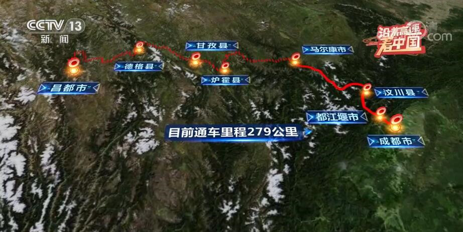 G4217 蓉昌高速公路规划里程约 1086 公里,途径线路:成都-郫都-都江堰-汶川-理县-马尔康-炉霍-甘孜-德格-西藏(江达)。
