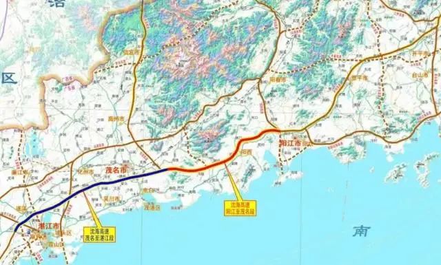 茂湛高速改扩建项目起于茂名市电白区观珠,终于湛江市麻章区高阳,全长约108.59公里,按双向8车道高速公路标准改扩建,设计速度120公里/小时,分两段建设。观珠至林屋段计划2022年建成通车;林屋至高阳段计划2023年建成通车。
