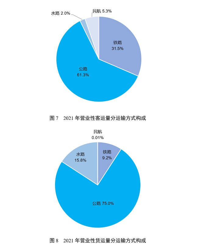 3.公报中营业性旅客运输量为铁路、公路、水路、民航完成数,不包括城市客运量;营业性货物运输量为铁路、公路、水路、民航完成数,不包括管道数据。自2021年起,道路货物运输量统计方法由“行业主管部门推算”调整为“规上企业全面调查+规下业户波动推算”。自2021年起,水路客运量统计方式全面采用企业联网直报。