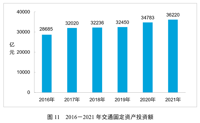 全年完成交通固定资产投资36220亿元,比上年增长4.1%。