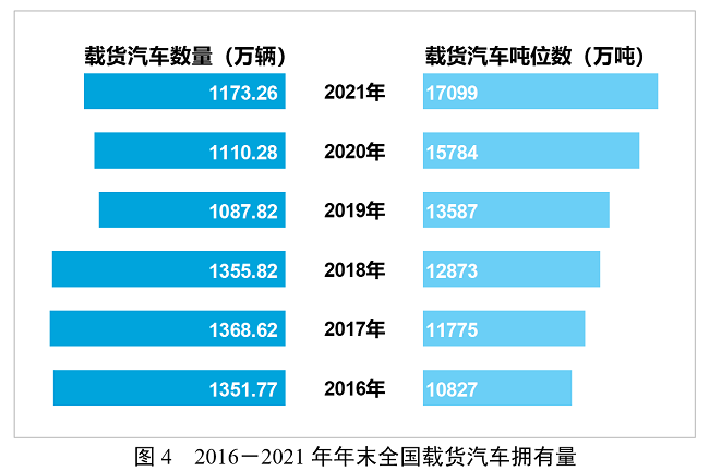 年末全国拥有公路营运汽车1231.96万辆,比上年末增长5.2%。分结构看,拥有载客汽车58.70万辆、1751.03万客位,分别下降4.2%和4.9%;拥有载货汽车1173.26万辆、17099.50万吨位,分别增长5.7%和8.3%,其中,普通货车406.94万辆、4923.43万吨位,分别下降1.7%和增长5.6%,专用货车60.39万辆、718.76万吨位,分别增长19.2%和20.5%,牵引车346.68万辆、增长11.5%,挂车359.25万辆、增长7.4%。
