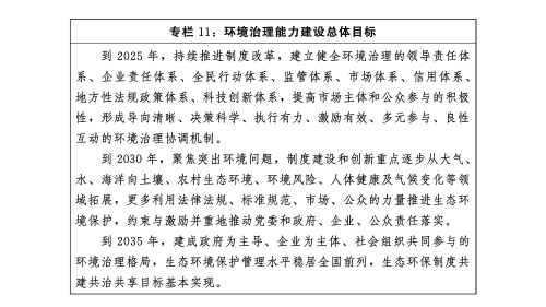 (4)高效能治理体制机制建立健全。生态文明领域统筹协调机制基本健全,生态环境治理能力短板加快补齐,生态环境治理效能得到提升,形成导向清晰、决策科学、执行有力、激励有效、多元参与、良性互动的生态环境治理体制机制。
