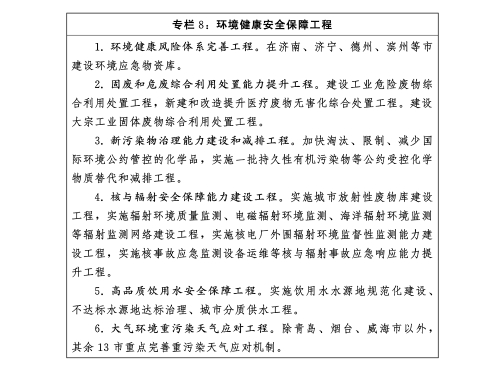 1.完善生态环境地方性法规及地方标准。加强海洋生态环境保护地方立法,制定修订山东省海洋环境保护条例、山东省实施《中华人民共和国固体废物污染环境防治法》办法、山东省危险废物鉴别工作规范等地方性法规及地方标准。及时清理与上位法不一致、不符合改革要求的地方性法规规章。探索制定省级污染物入海排放标准,健全环境标准实施信息反馈和评估机制,依据评估结果适时修订地方标准。