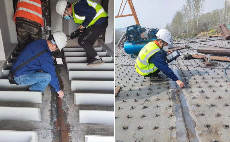 在跨河钢箱梁桥的施工过程中,箱梁焊接工艺的质量是保证市政桥梁工程施工质量的关键工序。基于此,试验室按照项目高质量自检验收要求,加班加点,严谨、合规、细致的对钢箱梁顶板、腹板、隔板等焊缝进行全数内部缺陷无损检测。对检测不合格的区段经处理后,委托第三方检测机构重新进行全数检验,以保证焊缝100%无内部缺陷,提高钢箱梁在设计合理使用年限内的安全性、耐久性。