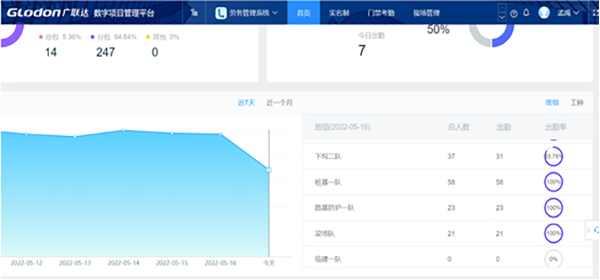 劳务实名制管理系统,运用网络信息技术,通过劳务人员管理、劳动合同管理、考勤管理、工资发放管理、劳动用工检查、教育培训等模块实现日常动态监管。其中考勤系统,每天提醒工人按时打卡,保证打卡率;同时提醒各施工班组劳资员每月按时申报工资,确保农民工工资按月发放。