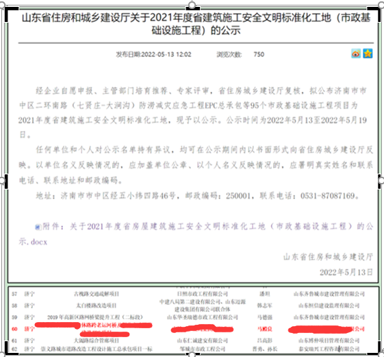 由集团参建的城区奥体路跨老运河桥项目(奥体路项目),经过项目全体员工的精心组织、不懈落实,荣获山东省住建厅颁发的“2021年度省建筑施工安全文明标准化工地(市政基础设施工程)”荣誉称号。