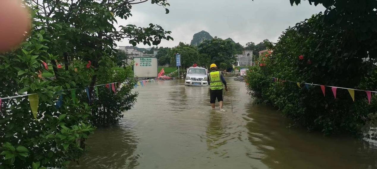 近日,贵港出现中到大雨,局部暴雨并伴有短时强降水和雷电等强对流天气。受连续强降水影响,贵港项目现场、道路及周边农田大部被淹,受灾严重。