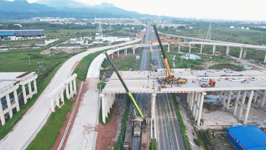 项目快讯|贵港西外环姚山枢纽互通上跨贵隆高速预制箱梁架设任务圆满完成