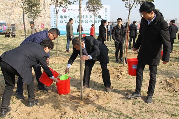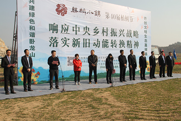 启动仪式结束后,以“响应中央乡村振兴战略、落实新旧动能转换精神”为主题,永昌集团、中建交通、凤凰城置业有限公司、山东天下吉祥华铁旅游文化有限公司及嘉祥县各级政府领导干部职工共计200余人,在卧龙山景区麒麟小镇项目建设现场开展集中植树活动。