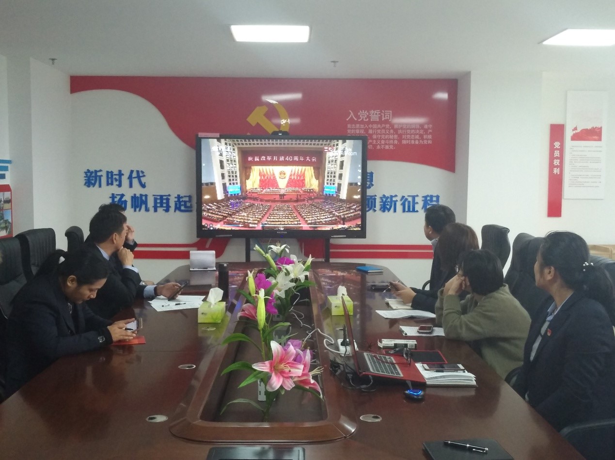 图四与会党员收看“改革开放40周年习总书记讲话”