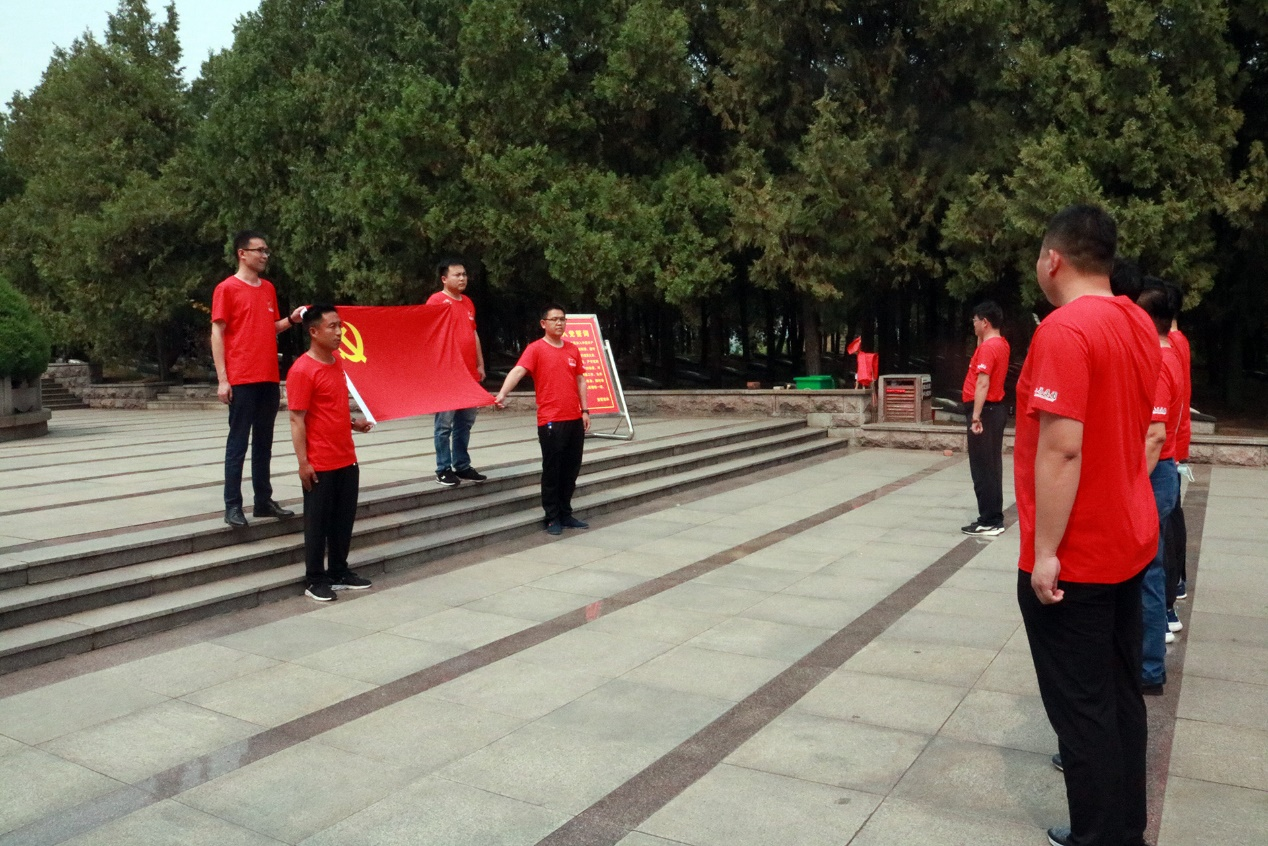 “只解沙场为国死,何须马革裹尸还”,青山无语,丰碑永存,粟裕将军和2800多位烈士,静静地安息在他们流血、牺牲、战斗过的土地。烈士墓前大家怀着无比沉痛的心情默哀三分钟,向革命先烈们表示深深的敬意和追思。集团党委委员杜宗刚带领党员同志们庄严宣誓,重温了入党誓词。铿锵有力的入党誓词,伴随着那段战火纷飞的光荣岁月鞭策着每个党员不断前行。